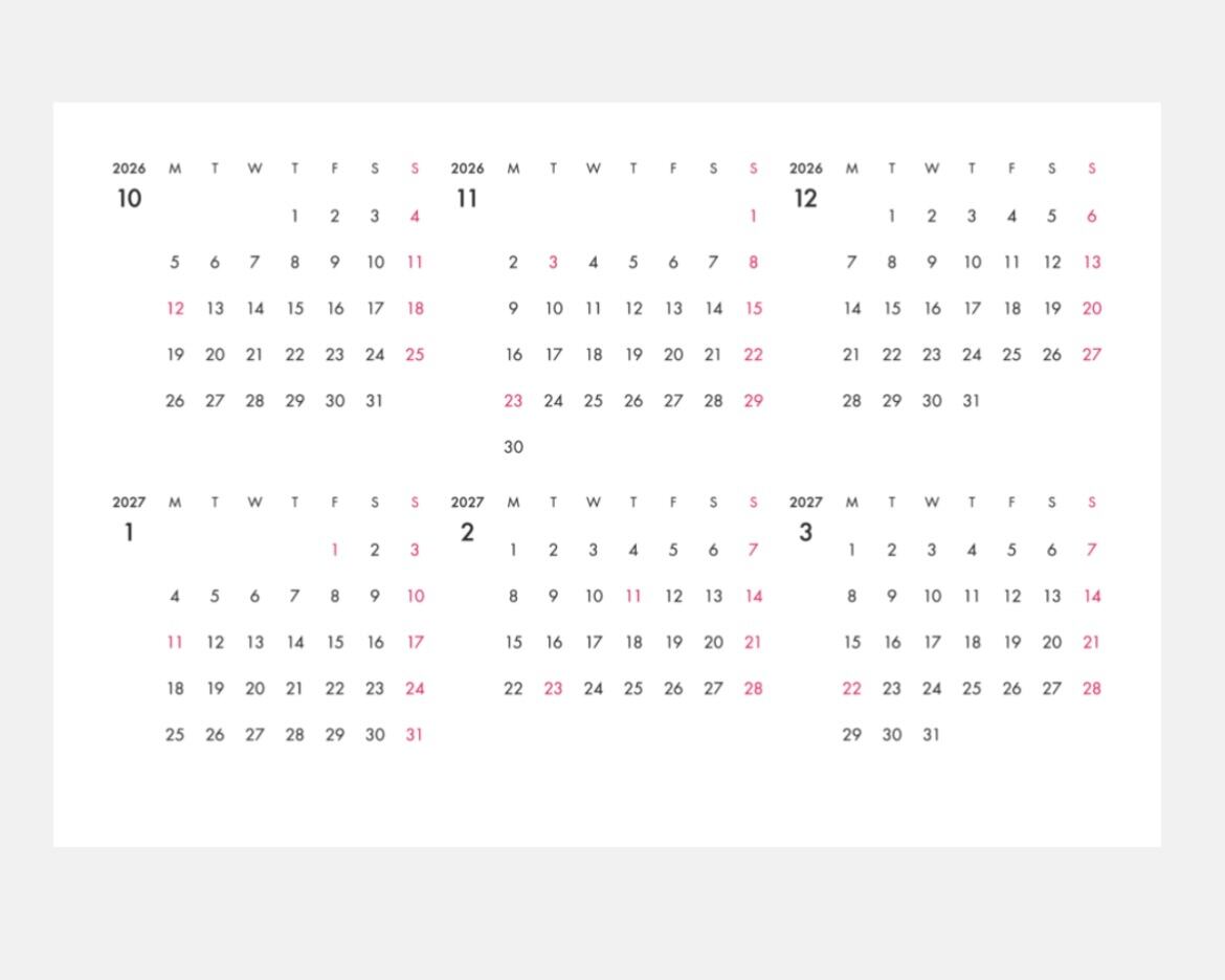 ⚫︎各カレンダーの裏面はスケジュールが書き込める無地カレンダー付きです。